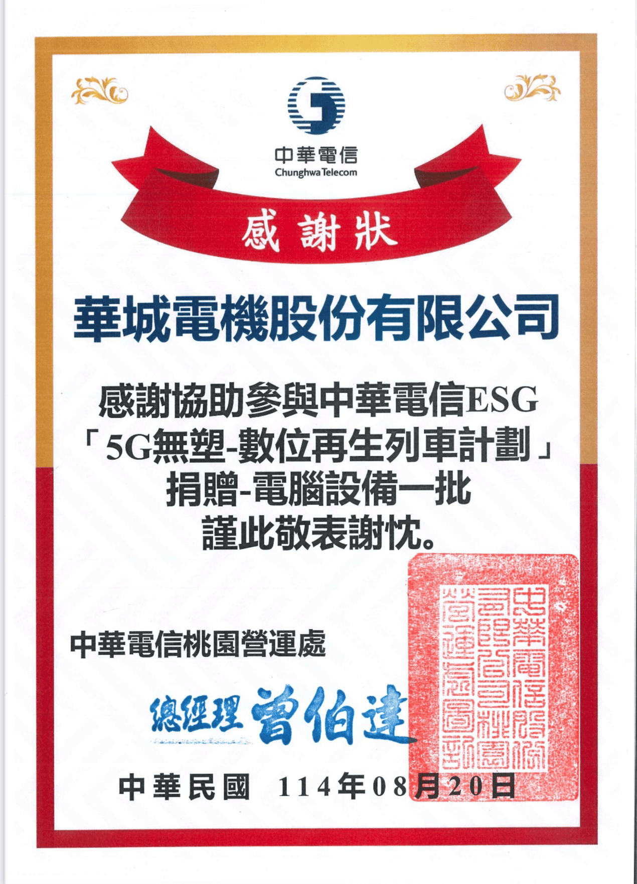 公司长期致力於企业社会责任,积极以实际行动推动ESG。今年志委会再次响应中华电信桃园营运处「5G无塑数位再生列车」公益计画,捐赠9台桌上型再生电脑主机,持续支持偏乡孩童的数位学习需求,点亮数位希望。