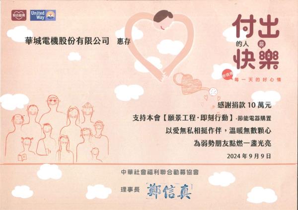 身為重電及綠能產業的一員,我們秉持能源技術與社會責任並行的理念,透過志工委員會與許憲樑社福基金會共同捐款, 以實際行動響應聯合勸募「搶救能源弱勢」活動,幫助那些因缺乏能源資源而陷入生活困境的群體。 作為致力於發展綠色能源技術的企業,我們深知能源獲取與利用不僅影響著每個家庭的生活品質,還攸關社會的可持續發展, 因此,期望藉由這次的活動喚起更多人對能源議題的關注,這也與我們長期致力於能源技術創新與環境保護的核心理念高度契合。 這次捐款讓我們深刻體會到,企業除了在技術與資金上做出貢獻,更應積極提升社會意識,促進社會各界共同參與解決能源不平等問題, 未來我們將持續參與更多公益活動,結合重電及綠能產業的專業和資源,為需要幫助的群體帶來實際改變,共同創造一個更具包容性與永續發展的未來。