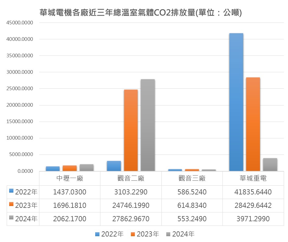 註:1. 重大氣體增加之情形,肇因於納入華城重電相關統計數據。